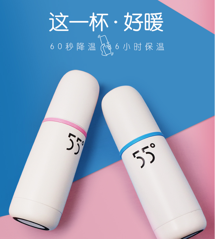 55度杯是一款具有快速變溫水杯,是北京五十五度科技有限公司自行研發(fā)、設(shè)計(jì)、生產(chǎn)的**款實(shí)用新型專(zhuān)利的高科技產(chǎn)品,瞬間因其強(qiáng)大功能在網(wǎng)絡(luò)走紅,成了各大電商的新寵。