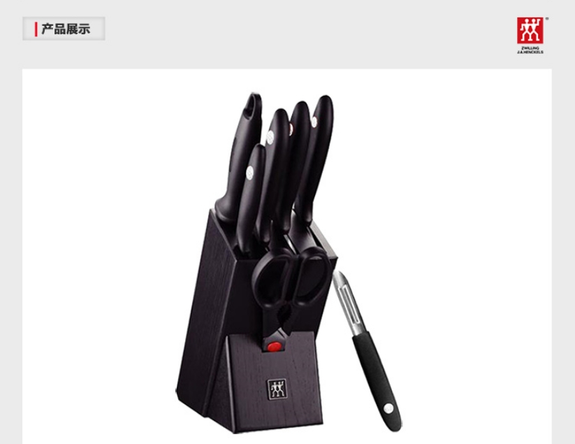 雙立人的四星系列刀具*早出現(xiàn)在1976年,具有里程碑意義。這一套四星木制插刀架套裝包括水果刀、三明治刀、廚房叉、面包刀、砍刀、西廚刀、切片刀、去骨刀、磨刀棒及黑色廚房多用剪櫸木插。